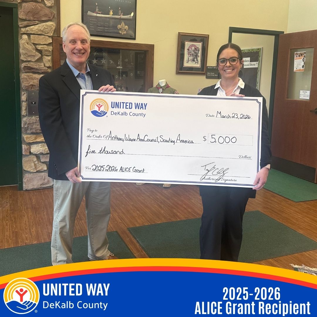 Anthony Wayne Area Council, Scouting America, is grateful to United Way of DeKalb County for its continued investment in local youth. This partnership reflects a shared commitment to improving lives and creating lasting, positive outcomes for children and families in DeKalb County.