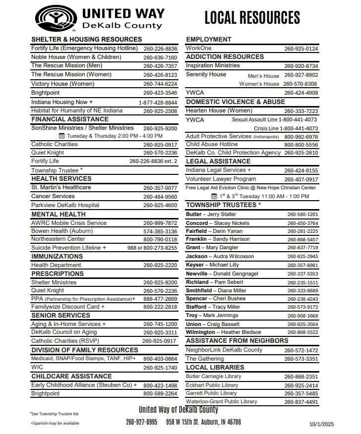 Please reach out to any of these listed agencies or call United Way of DeKalb County for more information.